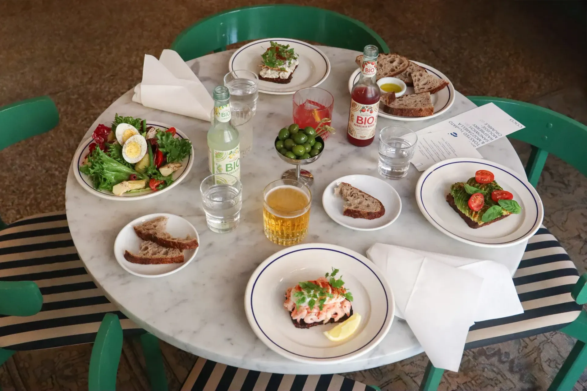 Vi har netop opdateret frokostkortet med en række simple frokostretter som rugbrød med rejer, æg og kørvel, avocado på ristet surdej med purløg og chili, og en klassisk Salad Nicoise med tun, æg, kartofler og oliven.