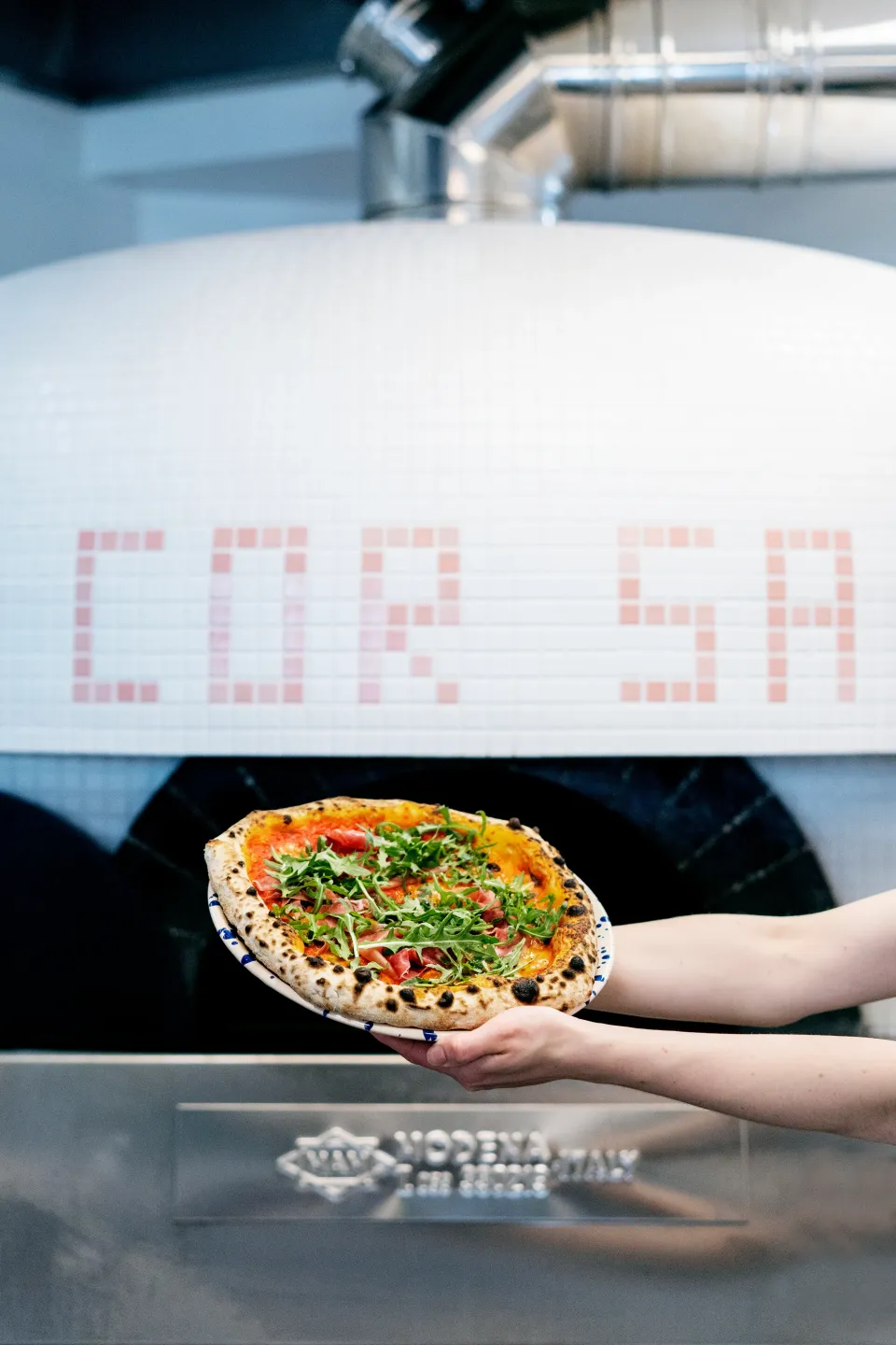 Den napolitanske pizza, er ikke som de andre. Pizzaerne bages eksplosivt ved høj temperatur i kort tid, så fyldet forbliver friskt og smagfuldt samtidig med at dejen får sine kendetegnende boblende leopardpletter. Vi bruger vores egen opskrift på surdej og lader dejen hæve i 4 døgn inden den bages, så den får den optimale smag og konsistens som en pizza napoletana skal have.