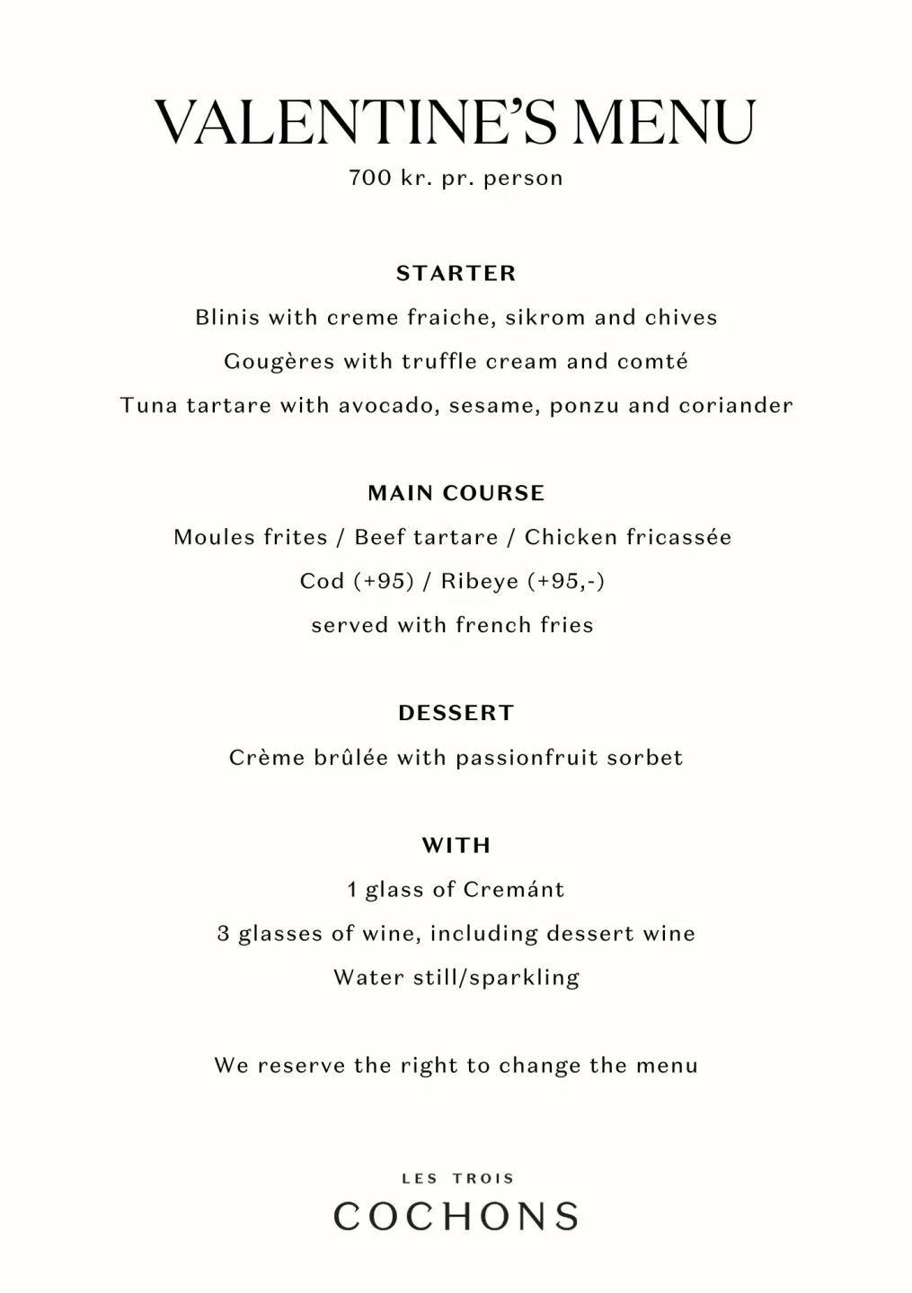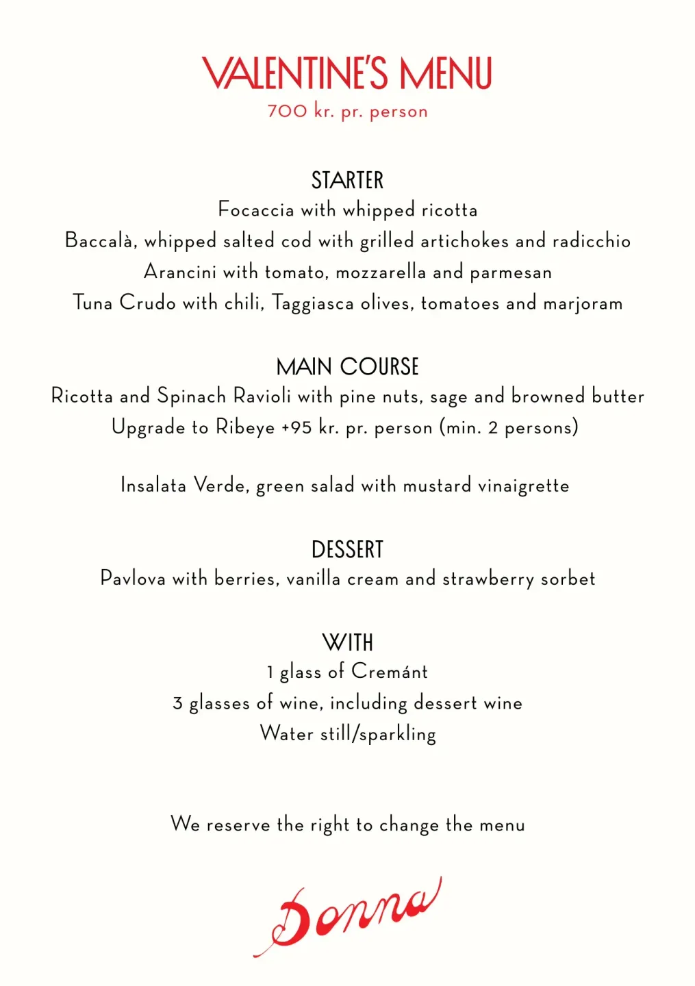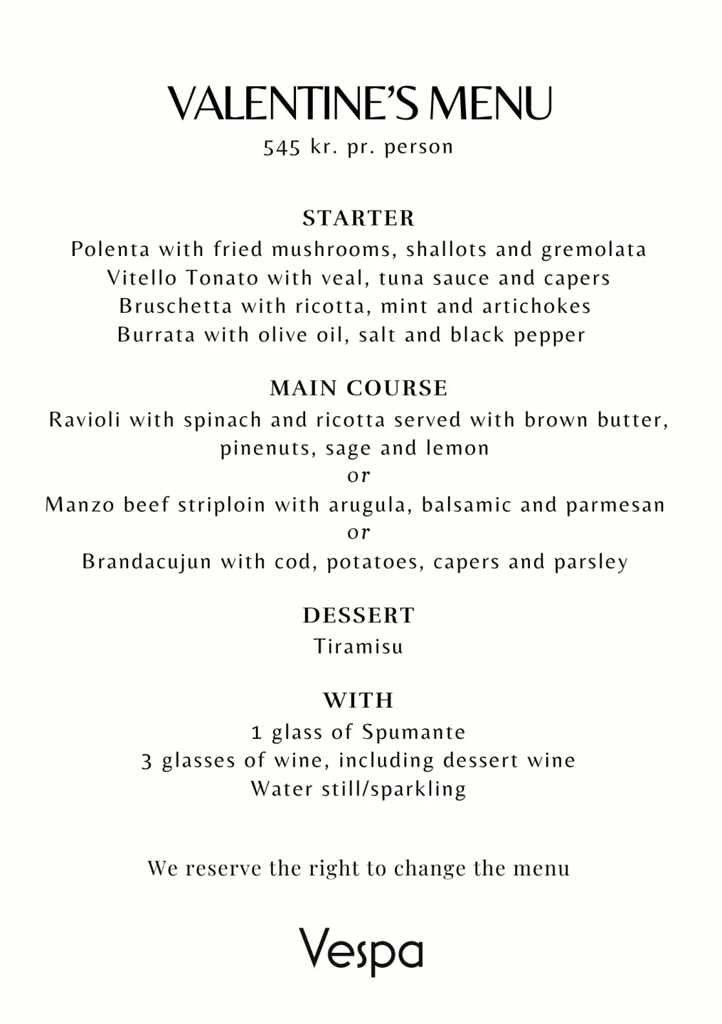 At a wide selection of our restaurants, we've put together a set menu, drinks included, so all you need to do is book a table, get comfortable, and enjoy the evening with your companion(s). You can book your Valentine’s dinner at the above mentioned restaurants via the link below, where you can also get a look at the special menus. We can of course accommodate dietary requirements – please let us know of any allergies or preferences when you book your table.