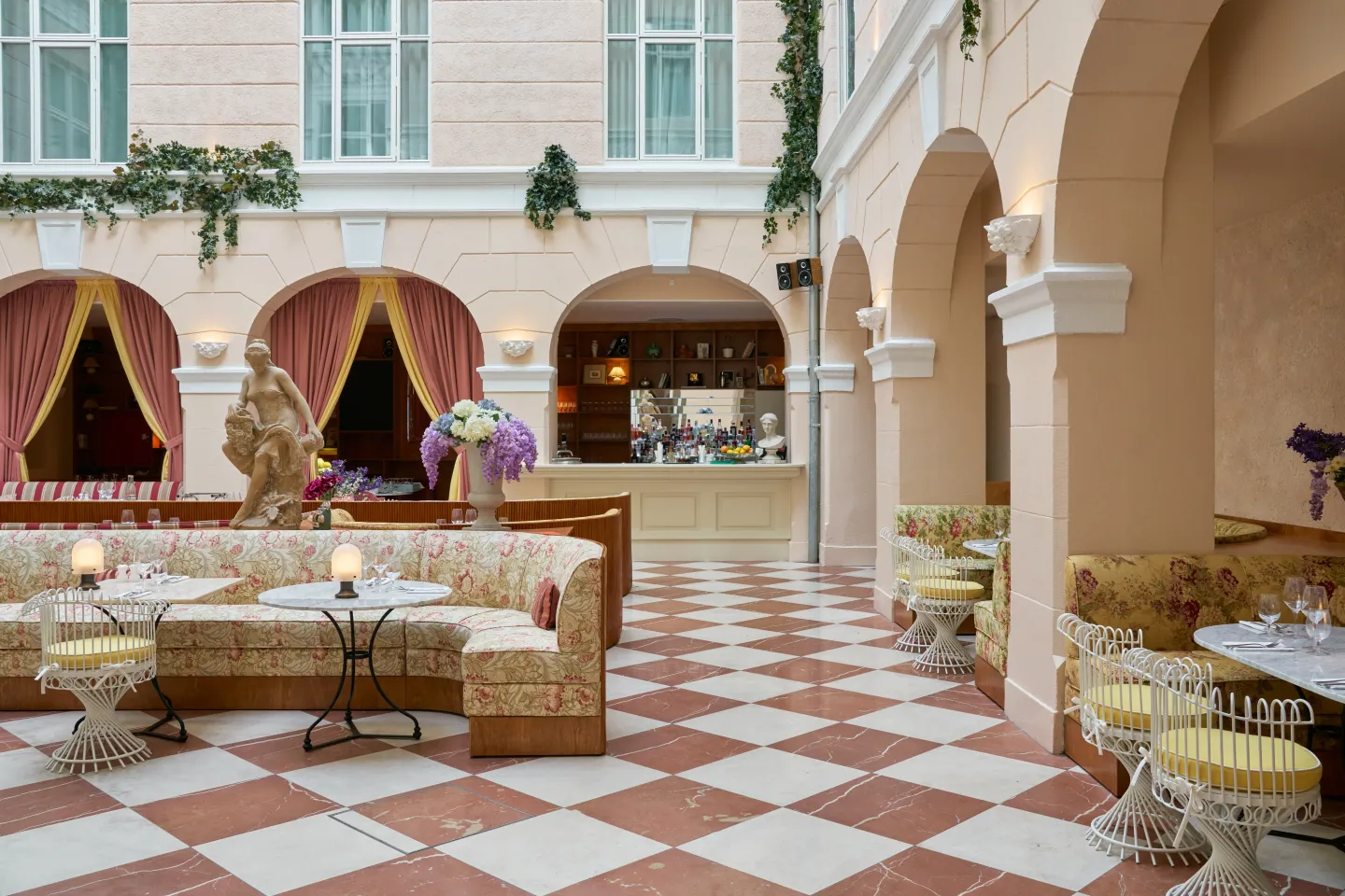 Donna offers several unique dining areas on the beautiful ground floor of Hotel Bella Grande, including a seductive front restaurant in red and pink tones, a laid-back cocktail lounge and a bright and classic antique atrium courtyard with views of the sky. Benvenuta a Donna!