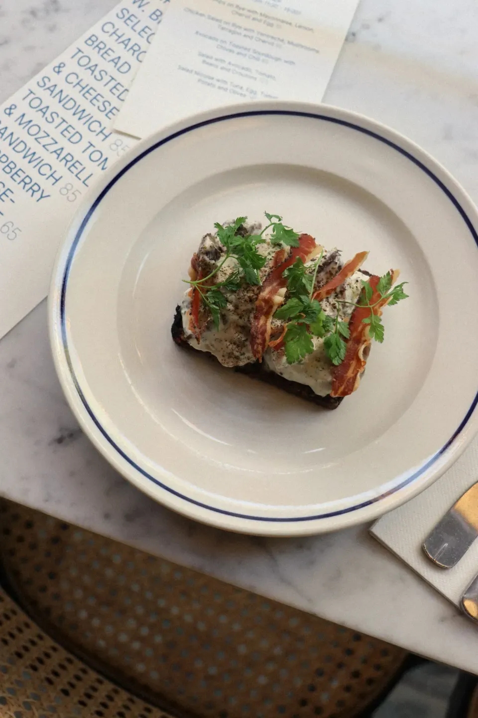 Vi har netop opdateret frokostkortet med en række simple frokostretter som rugbrød med rejer, æg og kørvel, avocado på ristet surdej med purløg og chili, og en klassisk Salad Nicoise med tun, æg, kartofler og oliven.
