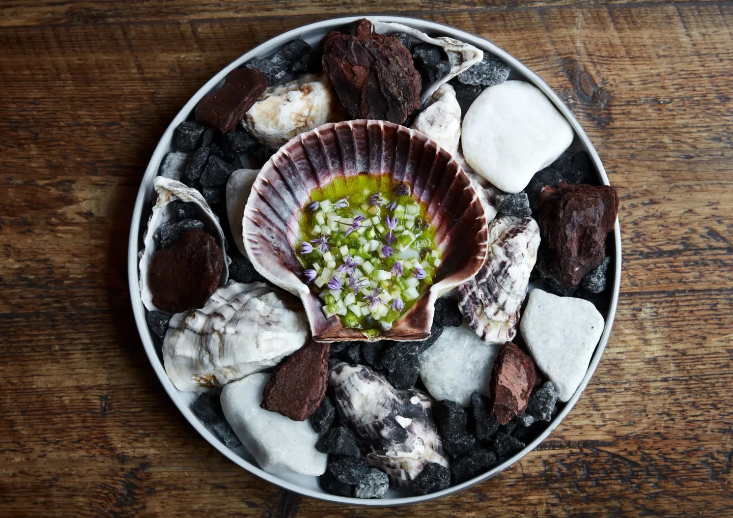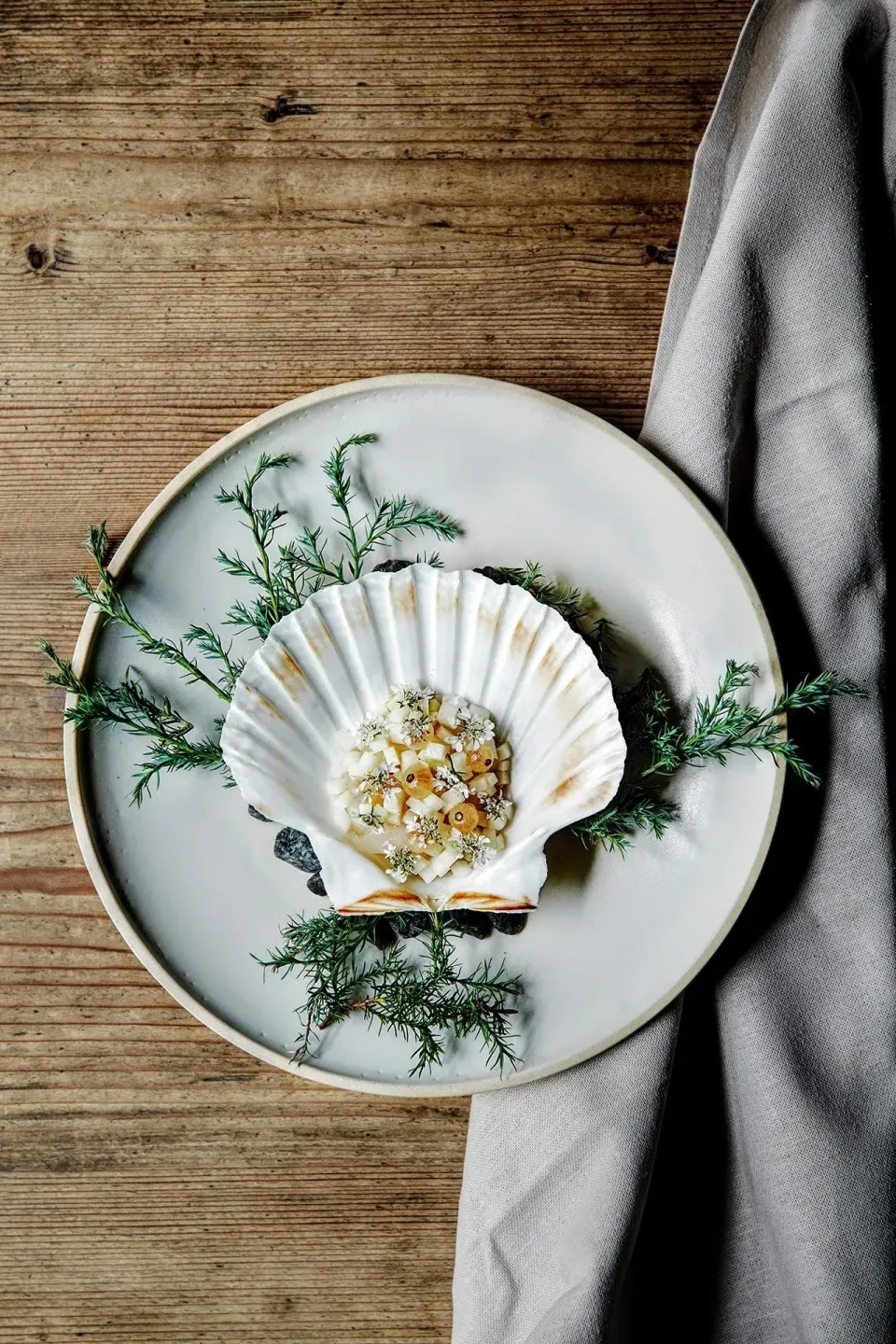 | Kammusling med æble og peberrod ( + Kaviar 100,-) | ||