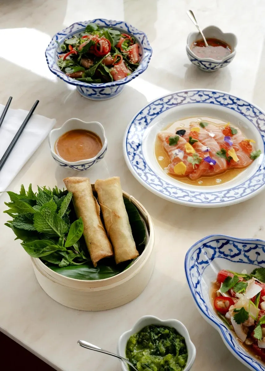 | Forårsrulle med bok choy, risnudler, sukkerærter, koriander og thailandsk basilikum | ||