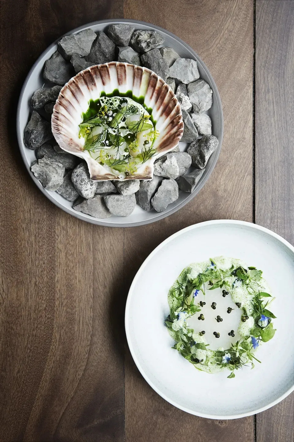 | Saltet Kammusling med jordskok, æble & estragon | ||